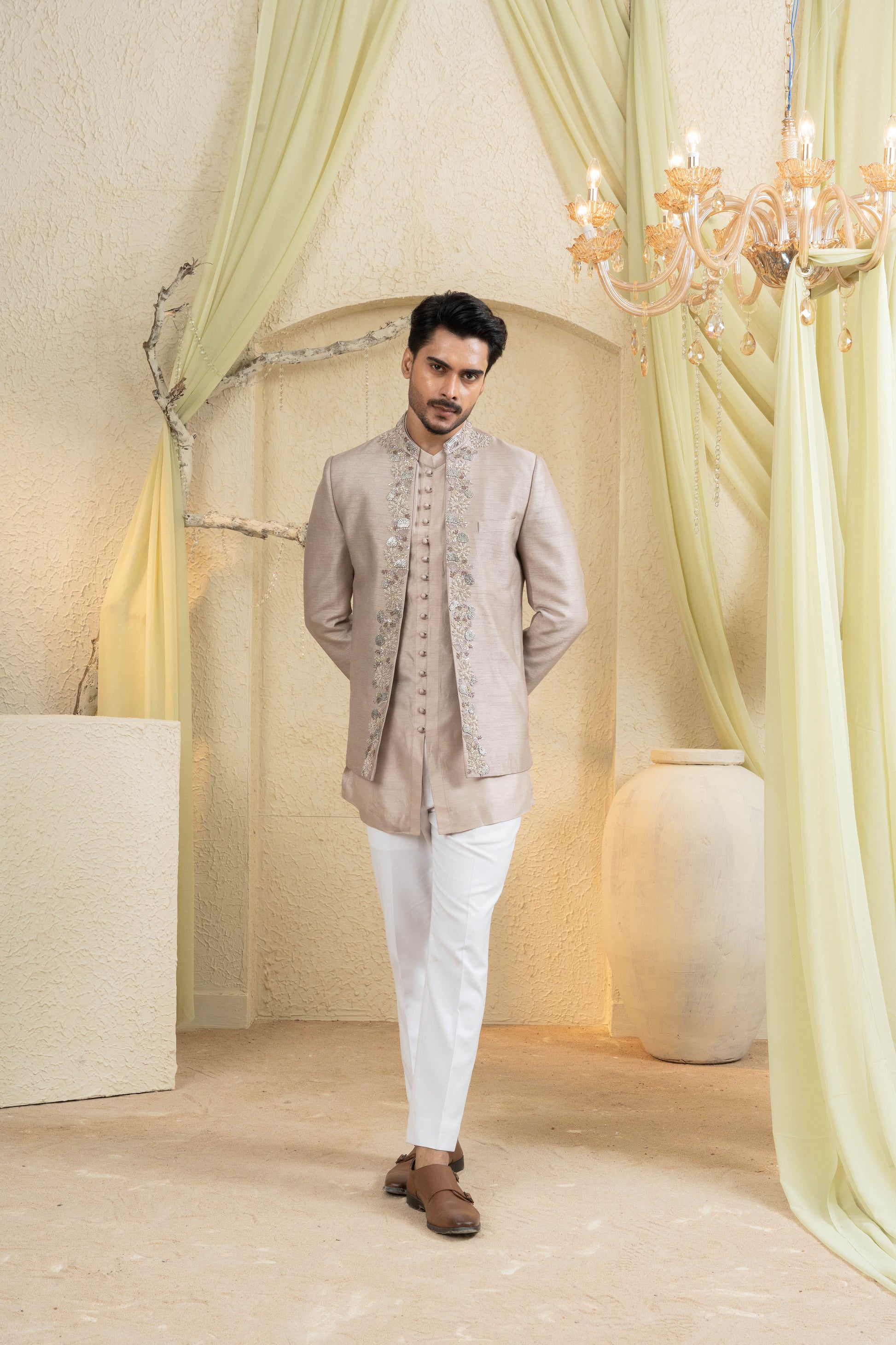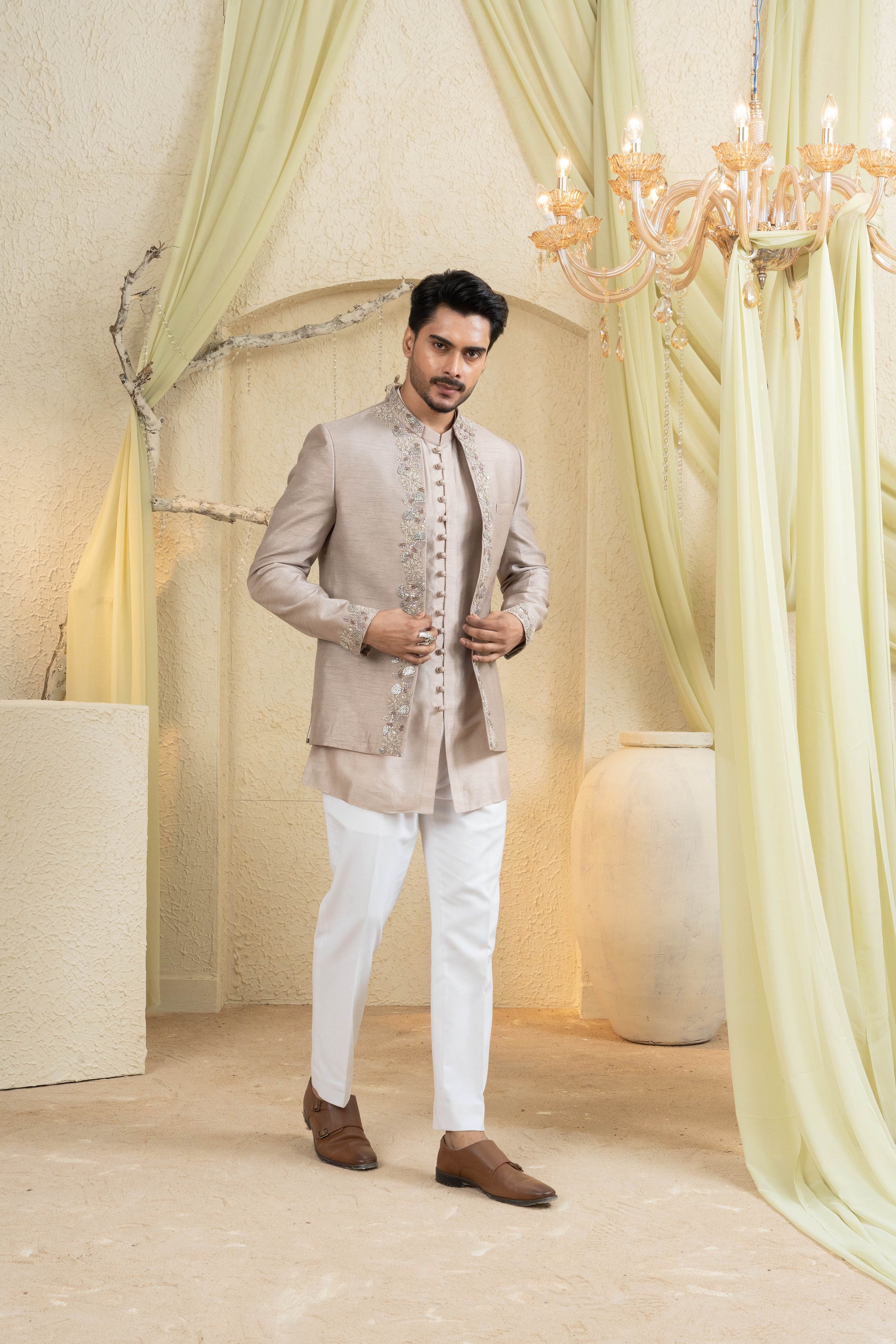 Champagne Gold Embroidered Jacket Set