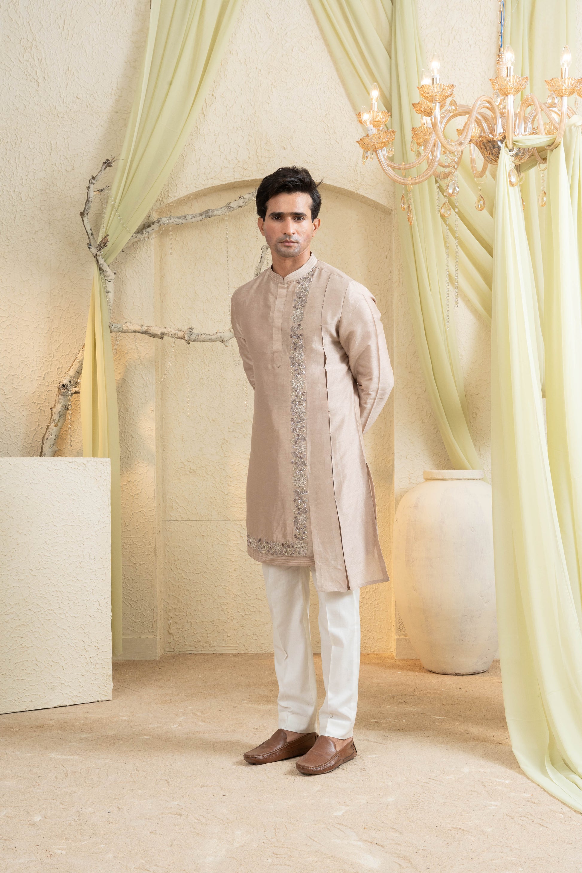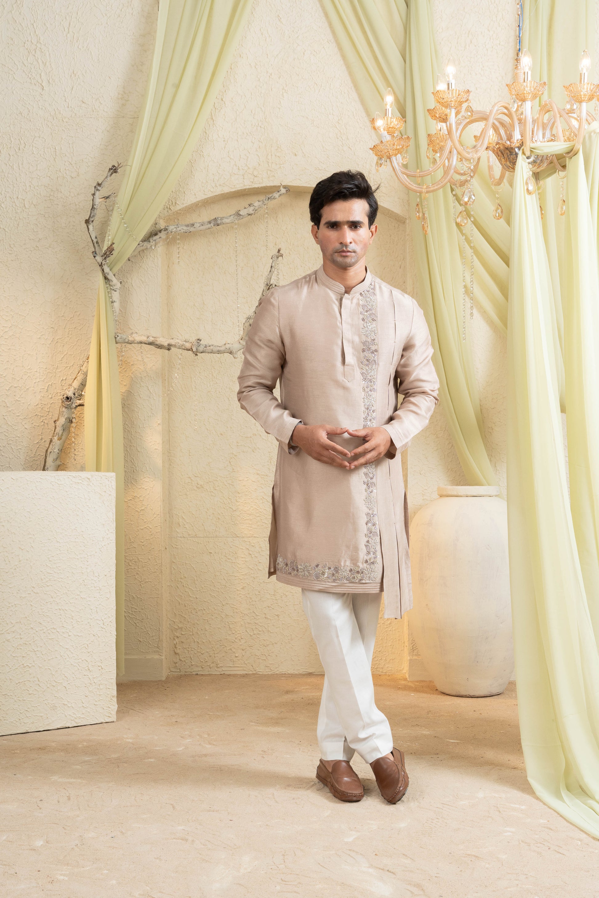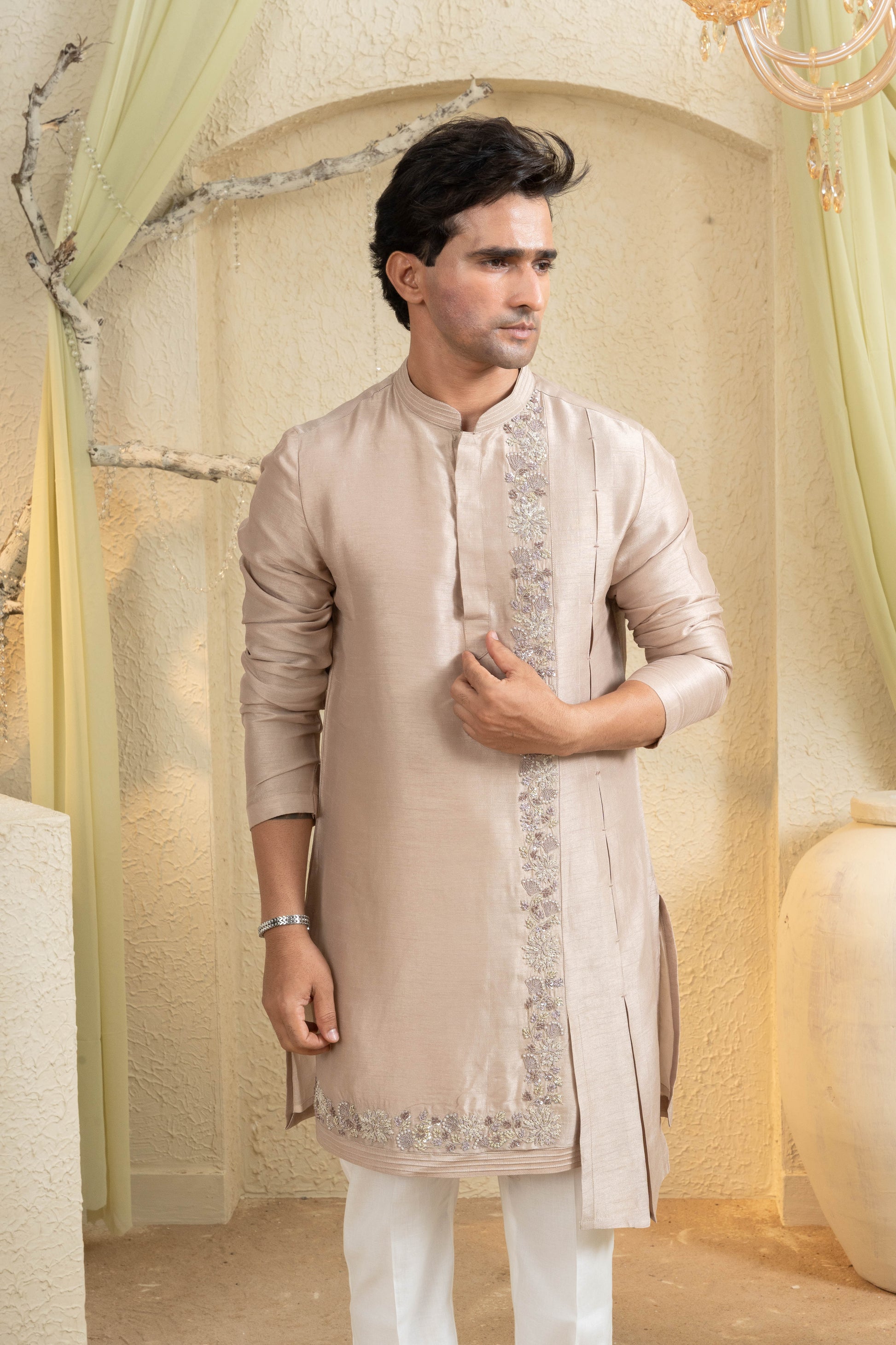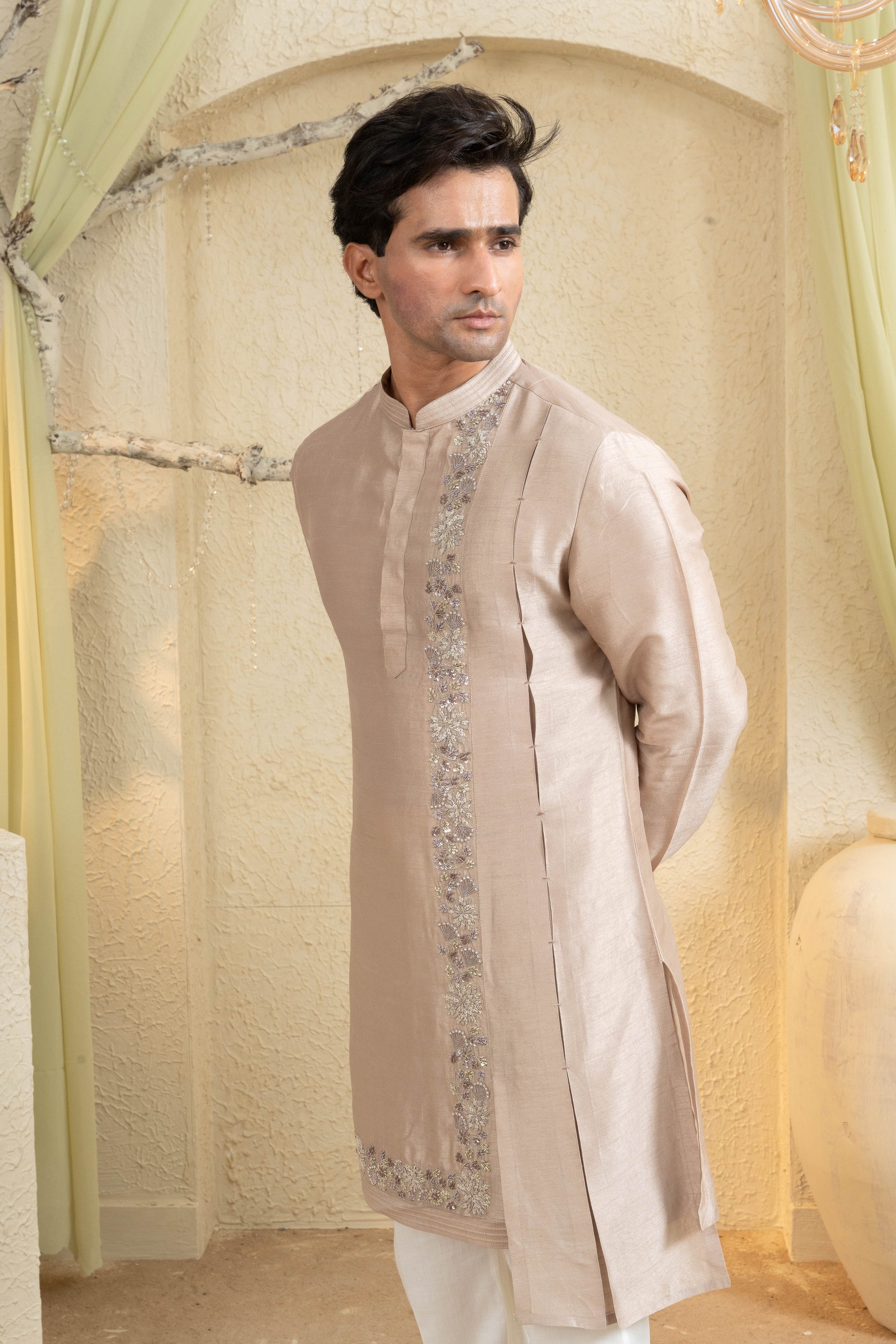 Champagne Gold Embroidered Kurta
