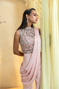 Muted Rose Hand-Embroidered Pant Saree