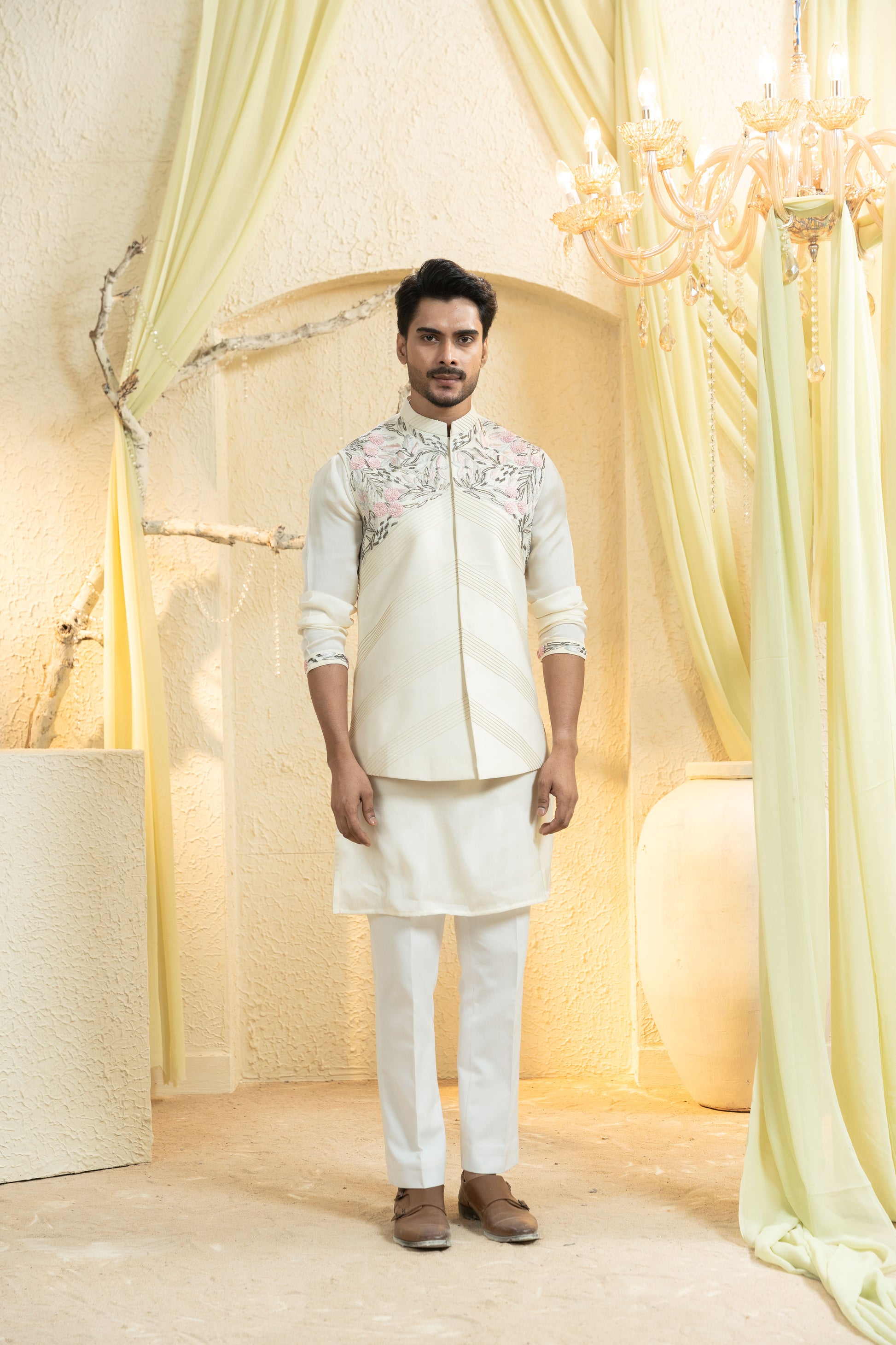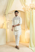 Swan White Hand-Embroidered Bundi Set